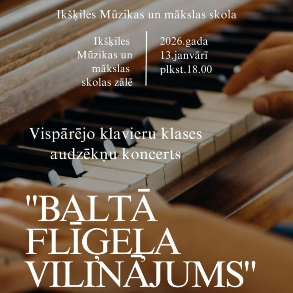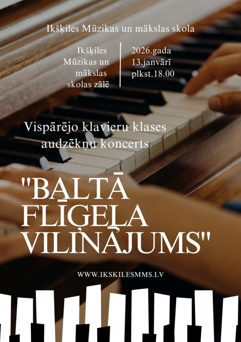 Ziemīgās noskaņās 13.janvāra vakarā skolas zālē noritēja klaviermūzikas vakars “Baltā flīģeļa vilinājums”. Koncertā uzstājās skolas vispārējo klavieru klases audzēkņi, kuriem klavieres ir otrais instruments un kuru apgūst paralēli savam galvenajam izvēlētajam instrumentam.