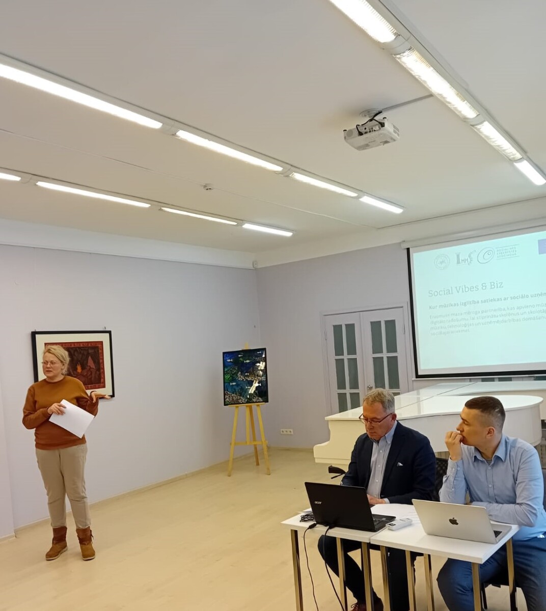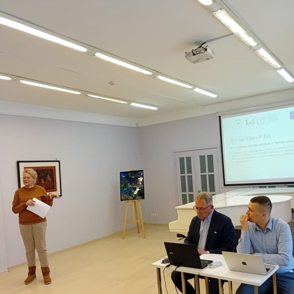 On 22 January 2026, during a discussion with NGOs, Spodris Kačāns, Director of Ikšķile Music and Art School, presented the Erasmus+ project “Social Vibes & Biz: music, technologies and social entrepreneurship” (No. 2025-1-LT01-KA210-SCH-000352453) and its activities.