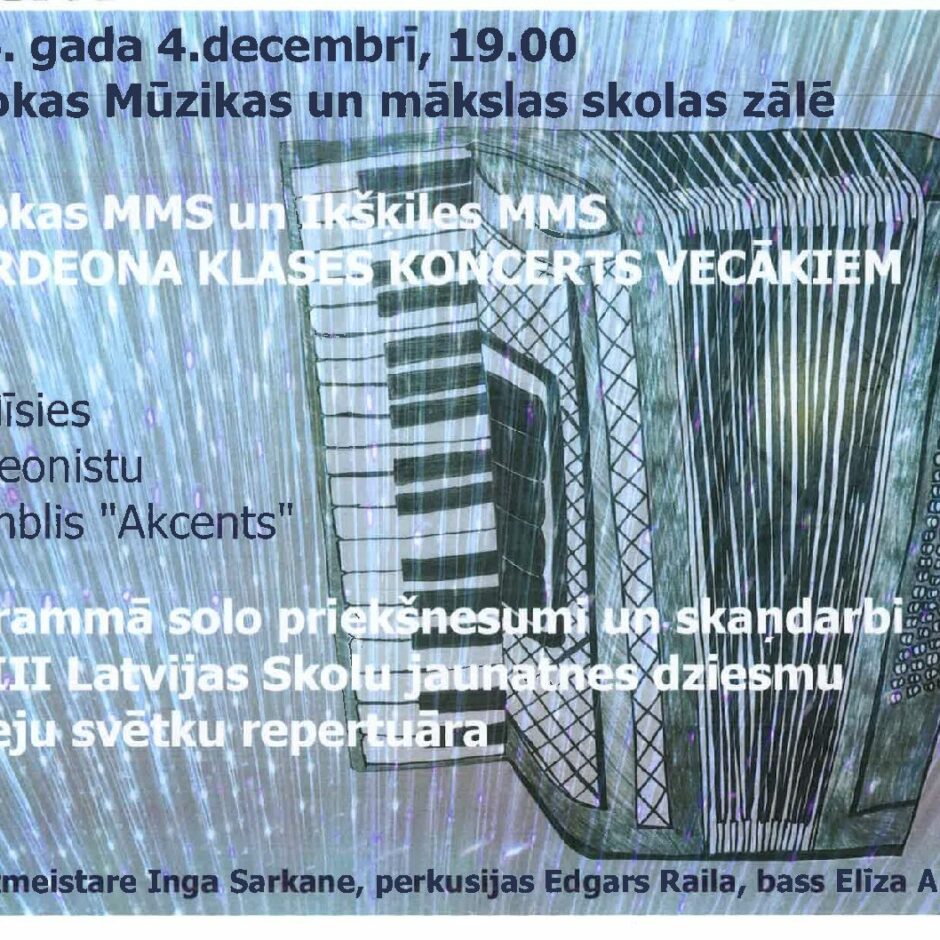 Ulbrokas Mūzikas un mākslas skolas un Ikšķiles Mūzikas un mākslas skolas akordeona klases koncerts vecākiem. Piedalīsies akordeonistu ansamblis “Akcents”.