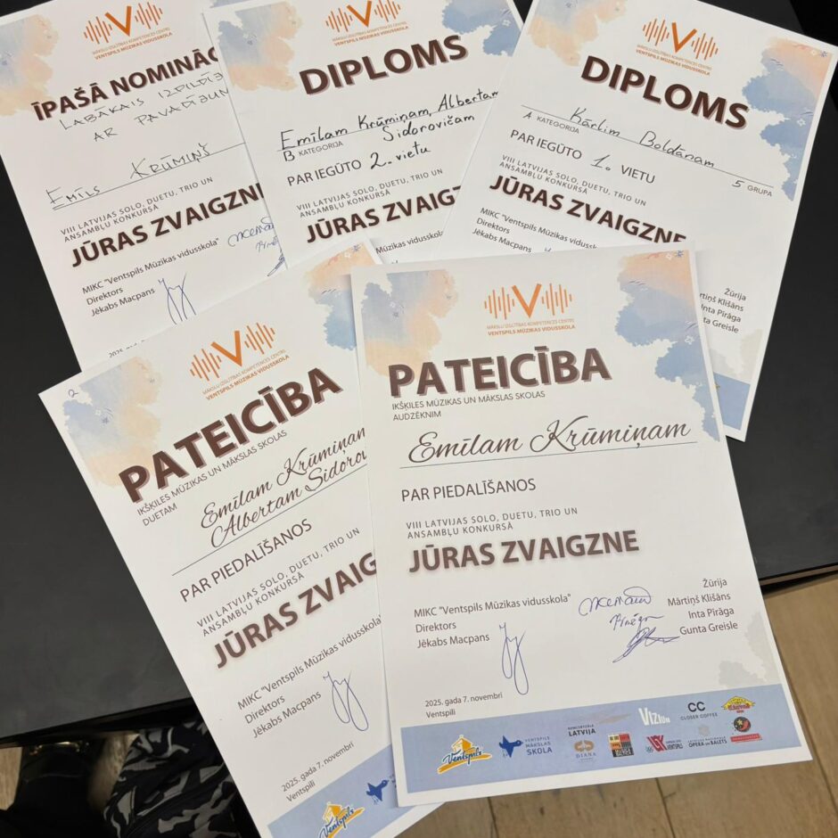 Agrā rīta skolotājas Elīna Auziņa – Baiguševa un Maira Līduma, kā koncertmeistare, kopā ar saviem audzēkņiem Emīlu Krūmiņu, Albertu Sidoroviču un Kārli Boldānu devās ceļā uz Ventspili. Kā saka pati Elīna: “konkursā “Jūras zvaigzne” sīvā konkurencē esam laureāti”: