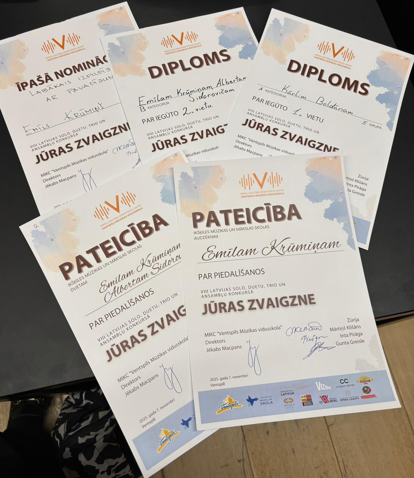 duets Emīls Krūmiņš un Alberts Sidorovičs 2. Vieta;